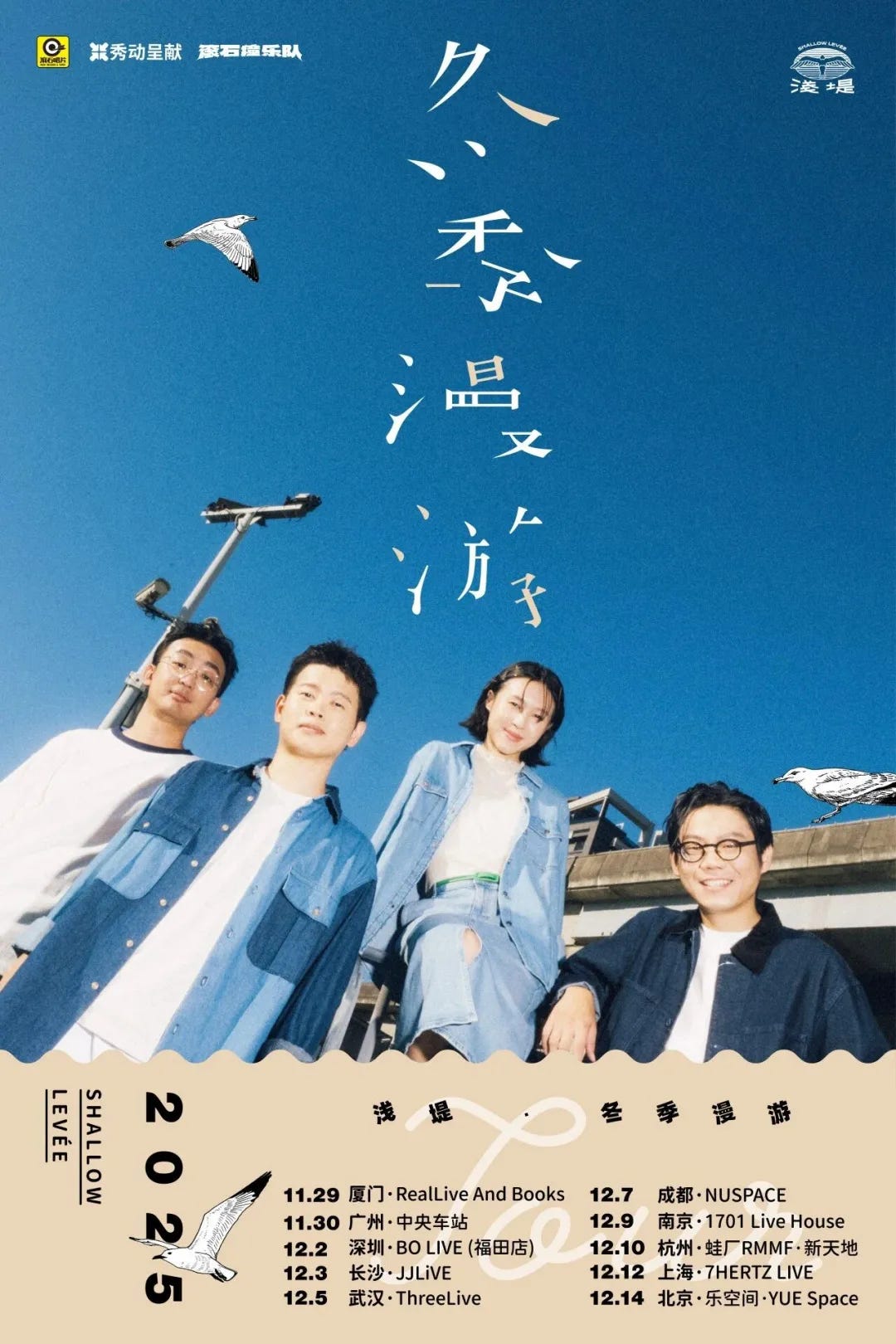 将华语与台语的诗意揉进日常琐碎,用轻快编曲包裹直抵心坎的共鸣,来自台湾的浅堤乐团,由主唱兼吉他手依玲、贝斯手方博、吉他手红茶、鼓手堂轩组成,他们早已凭借独特的音乐表达成为乐迷心中特别的存在。目前,由滚石唱片联合秀动呈献的 “滚石撞乐队 浅堤 2025 冬季漫游” 巡演正式开票,他们将带着生活里的细腻感悟,奔赴十座城市与乐迷相见。正值巡演前,UPEE 有幸与浅堤乐团进行通话,听他们聊聊音乐中的巧思和温度,以及这场冬季漫游背后的期待与故事。