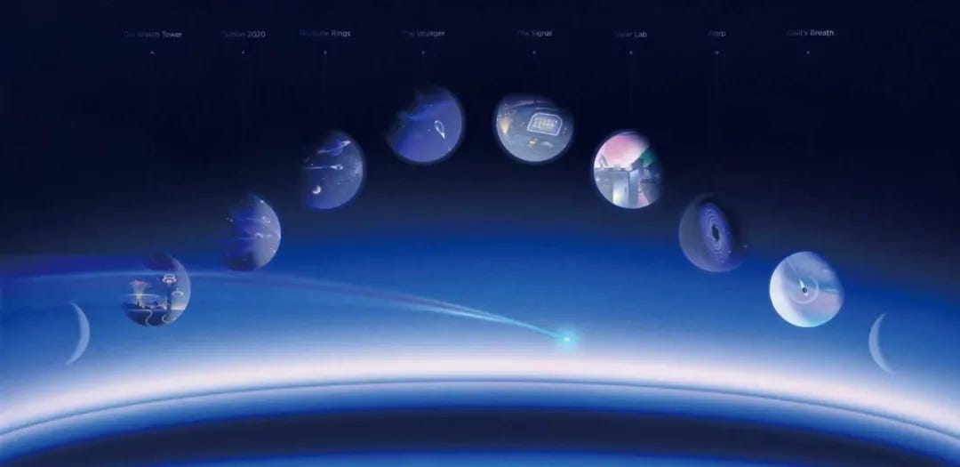 - 经过多年探索,人类的足迹已遍布太阳系,但却没能找到适合定居的新家园。在飞船经过海王星环时,人类的技术取得了进展,终于发现了突破柯伊伯带的办法,于是人类决定冲出太阳系,进入真正的深空。