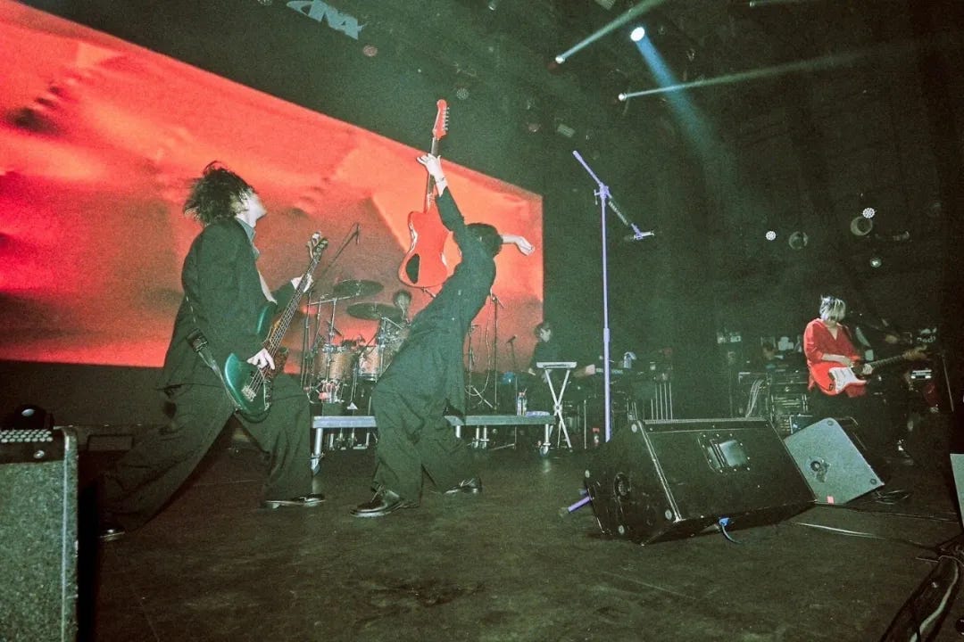 Hiroyuki:从创作层面来说,我们就是随心所欲地做音乐,什么都不去想。我可能有点在重复回答上一个问题了,但像流派这类东西,本就是留给你们这样的媒体去解读的,不是吗?我的意思是,我们在创作上可以随性,做完之后(这些作品的解读权)就全归你们了。所以在创作层面,我们就像鸟儿一样自由。就比如 Yoohei 会听各种各样的音乐,我们也会从他那里获得灵感。我试着跟上他的步伐 —— 去听他听的音乐,甚至还会找更多其他的来听 —— 但他从来没让我追上过。不过,说真的,这还挺厉害的。而且每次我们创作新曲目时,我都会试着让自己的思路焕然一新,对我来说,这就是身在这支乐队最大的乐趣。