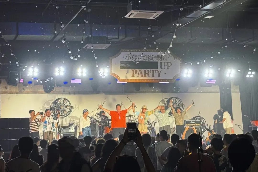 而区别于“音乐节”,小奔走仍然是乐园,仍然是派对,它在一定程度上是不那么区分“表演者”和“观众”的。正如发达星期四往年的派对,小奔走也拥有所有人一起合唱的时刻,正如他们此前在节目里可能只是随口提到的,最后的确是所有人一起合唱 Pulp 的《Common People》——这首 Britpop 的“灵魂”于此并未更多含义,或许只是出于一个“共好”的选择,或许也只是顺便延伸自观众“放弃了今天在 Pulp 韩国的演出赶来小奔走”的“接梗”,但的确可以在最后一刻让这个“消解严肃”的夜晚划上一个彼时的句点或未完的省略。