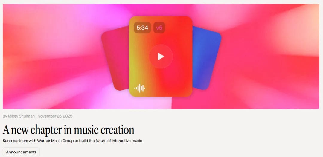当然,流媒体经济模式、传统唱片业衰落等都是目前让音乐人如此困顿更早存在且影响更剧烈的原因,这些是产业肌体上长期存在的慢性病。但Suno的崛起,并非只是给这个带病的肌体新增一道伤口或者提供一种技术平权的工具,它的本质是提供一套完全绕过人类创作核心环节的、可规模化的替代性生产方法。这不再是在原有系统内加剧竞争,而是试图用一套无需“音乐人”这一生物的新系统,来定义何为“音乐产品”。对资本而言,它首次提供了将音乐创作这一创造性劳动,彻底转化为可预测无休止的标准化数据生产的工作流。对产业生态而言,它不再仅仅挤压底层音乐人的空间,而是动摇了从创作、录制到雇佣乐手、制作人等一整条专业链条存在的经济逻辑。它威胁的是职业音乐人作为一种社会分工的根基。